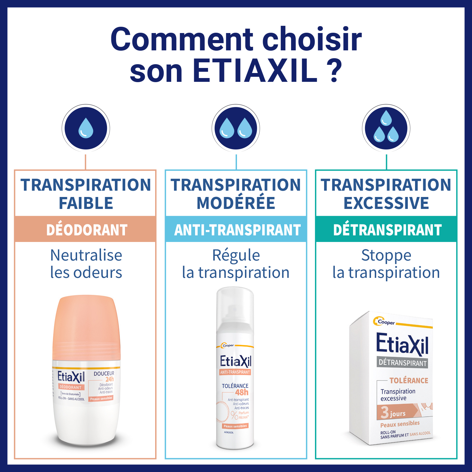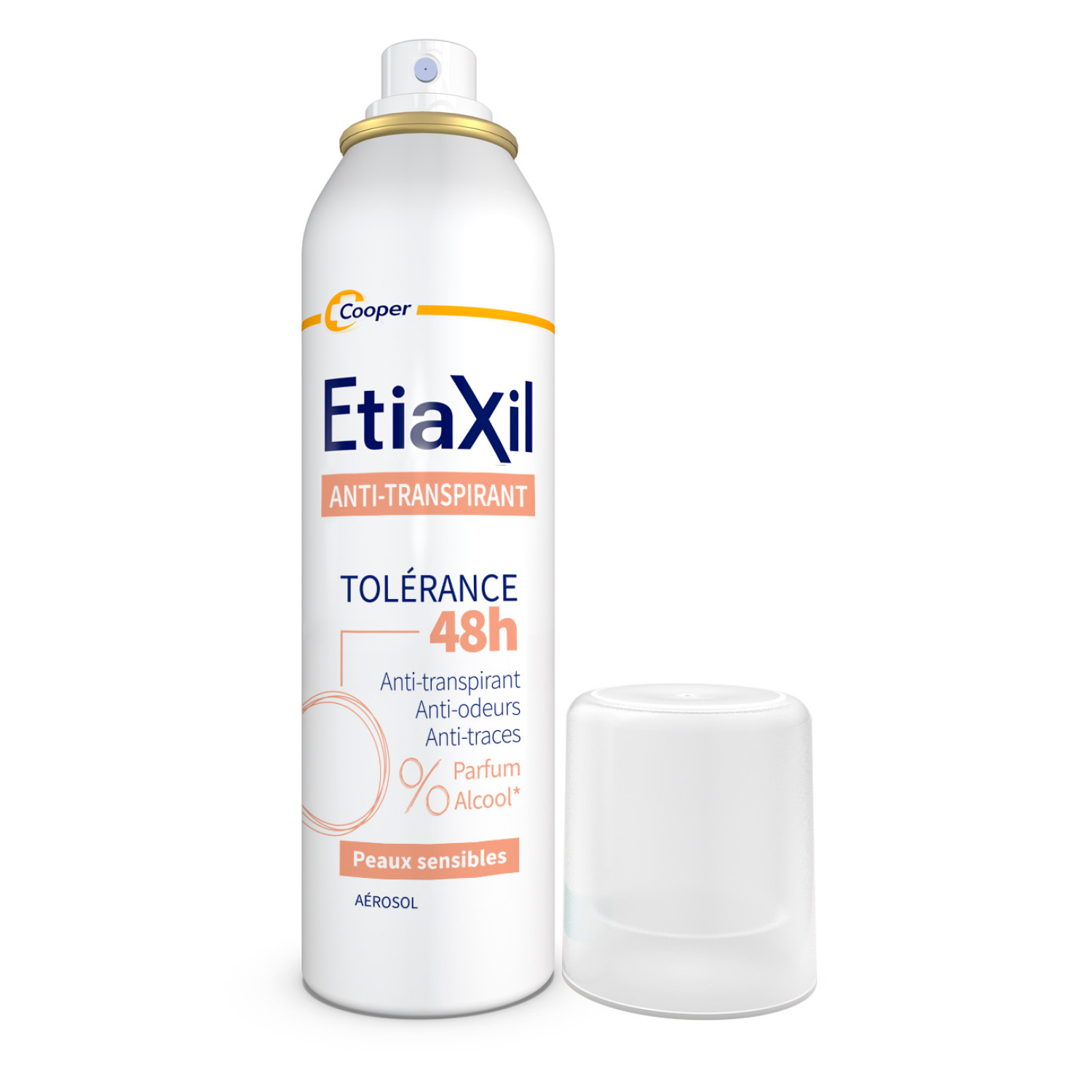 L'anti-transpirant Etiaxil Tolérance 48h aérosol, a été spécifiquement developpé pour prendre soin des peaux sensibles sans faire de compromis sur l'efficacité. Sans alcool* et sans parfum, sa formule permet d’assurer la préservation de la barrière cutanée. Elle contient des actifs déodorants et anti-transpirants soigneusement sélectionnés pour assurer une efficacité longue durée notamment grâce à l'action de la Terre de diatomée qui neutralise efficacement les odeurs et absorbe l'humidité tout en respectant les peaux les plus sensibles. Anti-traces jaunes & blanches, il protège sans faire de marque sur les vêtements.