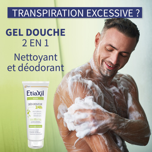 En complément de sa gamme de traitements de la transpiration excessive (Etiaxil Détranspirant), Etiaxil innove avec Etiaxil Déo-Douche Citrus 24h, une formule 2-en-1 nettoyante et déodorante pour lutter contre la transpiration excessive. 95% des testeurs d’Etiaxil Déo-Douche 24h ont été satisfaits1.