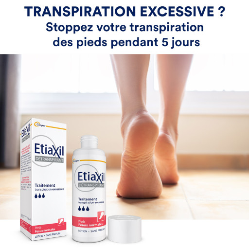 La lotion Etiaxil Détranspirant Peaux Normales a été conçue pour traiter efficacement la transpiration excessive des pieds mais ce produit peut également s’appliquer en cas de transpiration excessive palmaire (des mains).